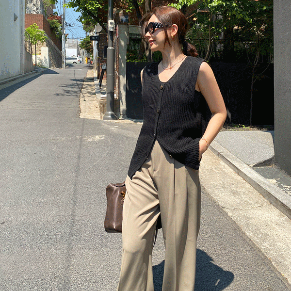 Wood Button Knit Vest (2col)